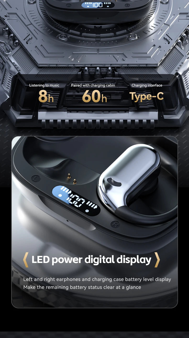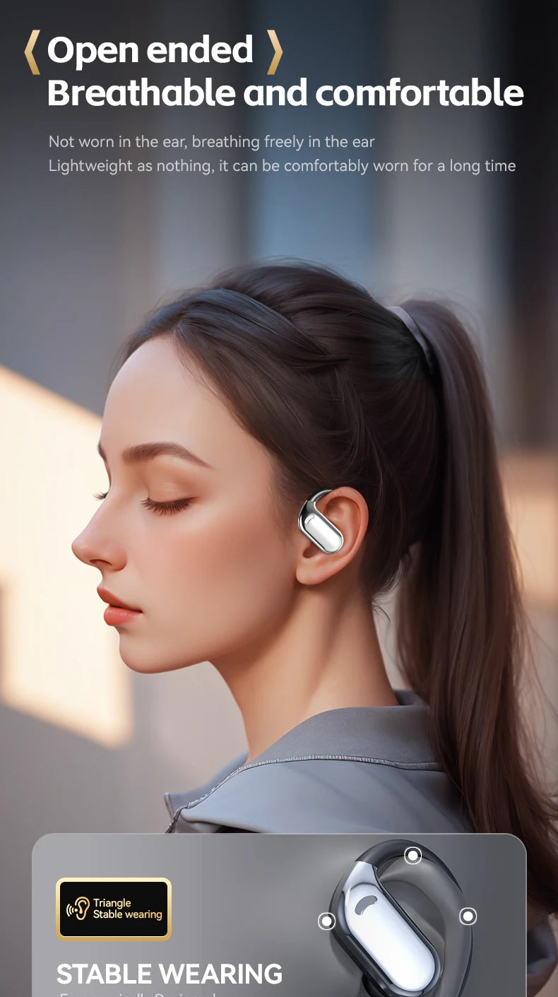 With advanced Bluetooth technology, these earbuds provide fast pairing, low-latency connections, and reliable performance across smartphones, tablets, and other Bluetooth-enabled devices. The ergonomic ear clip design keeps earbuds secure even during high-intensity workouts, running, or long gaming sessions. Lightweight construction allows extended wear without discomfort or ear fatigue.